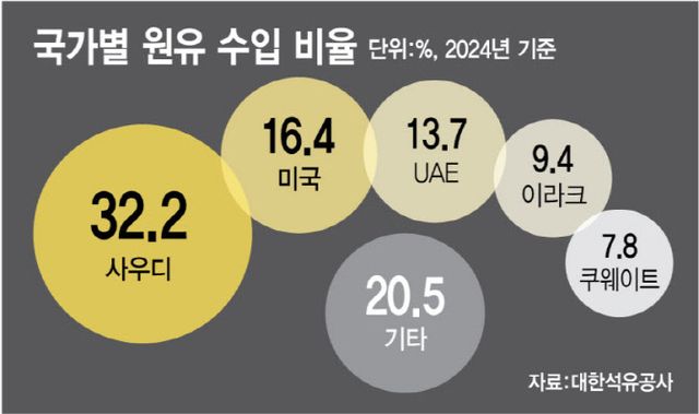 유승훈 서울과기대 에너지정책학과 교수는 “지금은 원유 수입선을 다변화해도, 국내 생산 시설이 대부분 중동산 중질유에 최적화 돼 있어 생산할 공장이 없다”며 “정유사들이 다른 설비를 확충할 수 있도록 정부가 인센티브를 주는 등 일정 수준의 유도 전략도 필요하다”고 말했다.