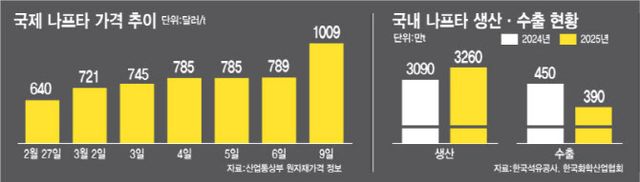 15일 업계 및 관계부처에 따르면 산업통상부는 중동 사태에 따른 나프타 수급 대책을 마련하고 있다. 이 가운데 국내 생산 나프타 수출을 제한하는 방안도 검토되고 있다. 당장 부족한 나프타 수요를 채우기 위해 국내 생산 물량을 전량 내수로 전환하겠다는 것이다. 내수 전환 과정에서 기업 부담을 줄이기 위한 금융 지원 등의 방안도 포함될 전망이다.