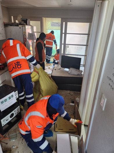 [와이뉴스] 시흥시 장곡동은 지난 3월 12일 LH19단지에서 집안의 오물과 쓰레기 적치로 주변 가구까지 피해를 주고 있는 주거환경 취약가구에 명성환경(자)과 함께 주거 환경 개선 사업을 실시했다.