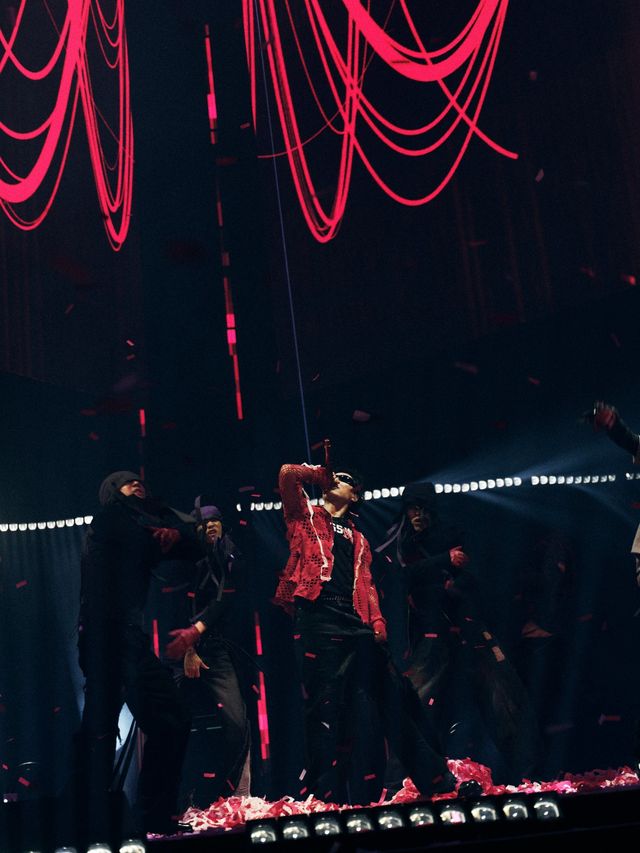 이날 우즈는 플로어 스탠딩 구역 콘솔 인근에서 깜짝 등장, 팬들의 뜨거운 응원 속에 메인 무대에 올랐다. 신보 수록곡 ‘Bloodline’과 ‘Downtown’을 연이어 선보인 그는 2022년 미니4집 ‘COLORFUL TRAUMA’ 수록곡 ‘Dirt on my leather’로 열기를 끌어올렸다.