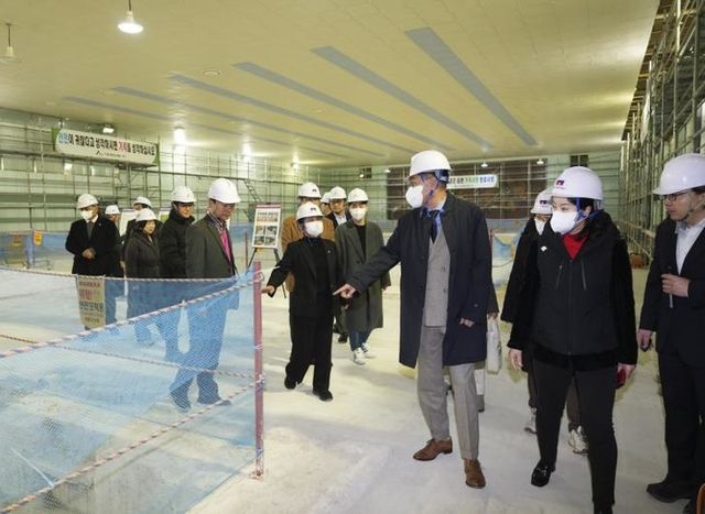 | ▲ 올림픽기념국민생활관 내 공사현장과 스크린파크골프장을 방문한 정문헌 구청장의 모습 |