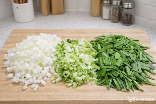 2. 양파는 채 썰고 대파는 반으로 갈라 얇게 썬다. 부추는 3cm 길이로 자른다.