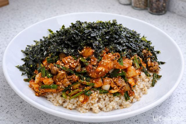 7. 밥 위에 올려 김 가루와 참기름을 더해 비벼 먹는다.