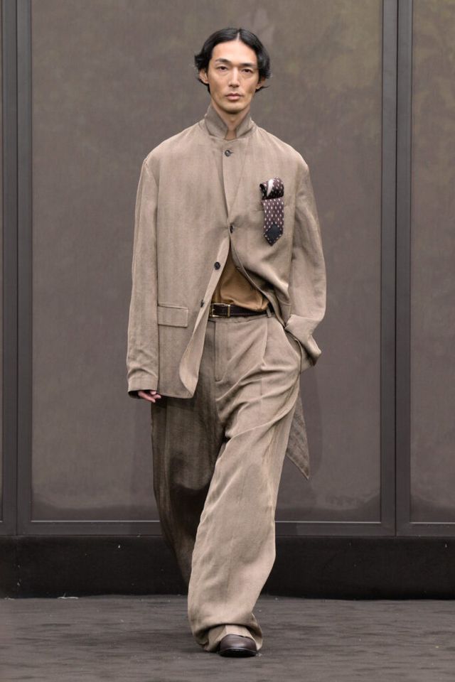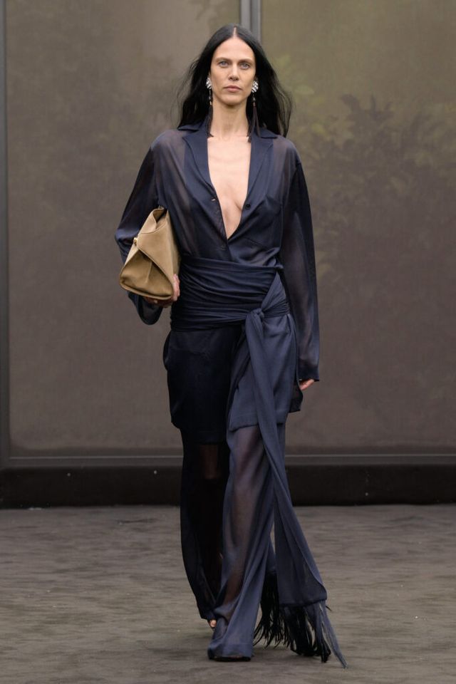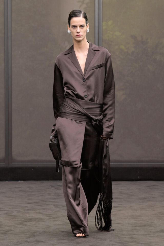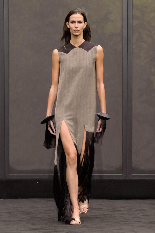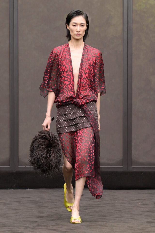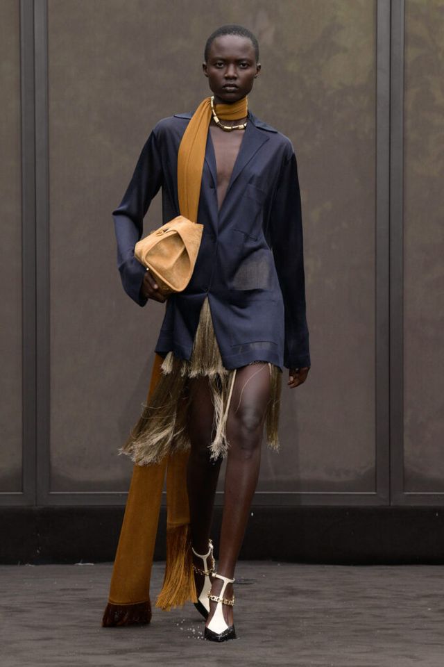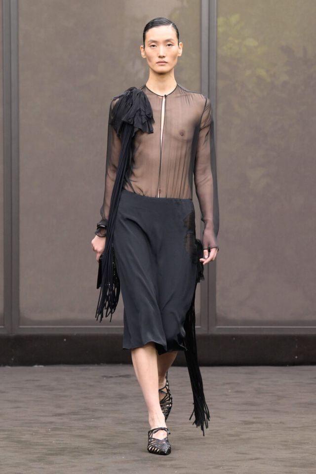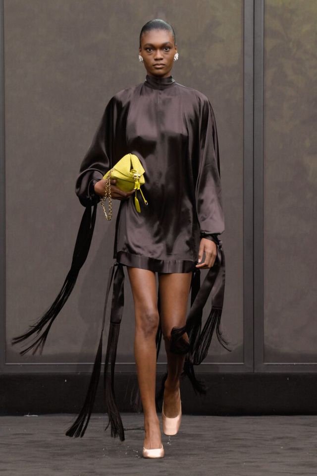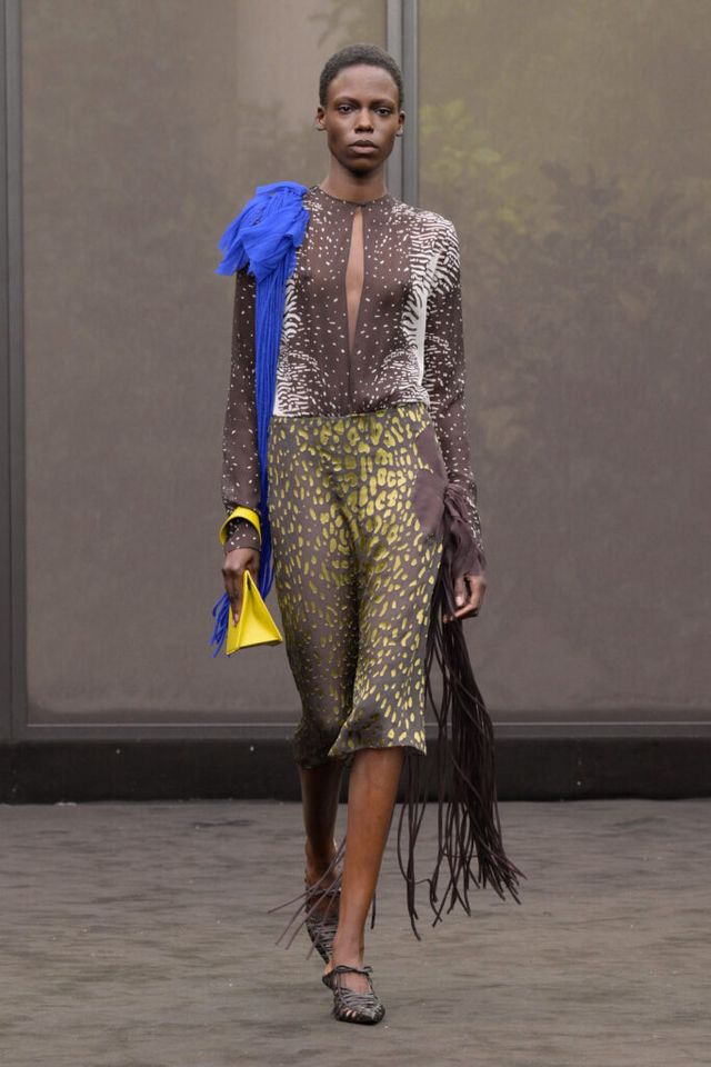 NOTE 1920년대의 ‘해방된 우아함’을 현대적 미학으로 승화한 맥시밀리언 데이비스. 이는 하우스의 아카이브 중 1920년대 무성영화의 스타 롤러 토드가 레오퍼드 룩을 입고 춤추는 장면에서 영감을 얻으며 시작됐다. 맥시밀리언은 유연한 실크에 애니멀 프린트를 넣거나 정제된 실루엣에 프린지나 장식을 더해 율동감을 주는 방식으로 재즈 시대의 낭만과 장식적 에너지, 성별의 경계를 유연하게 넘나드는 디테일을 가미했다. 과거의 향수를 넘어 새로운 시대를 향한 해방을 선언하는 출발점 같았던 쇼.