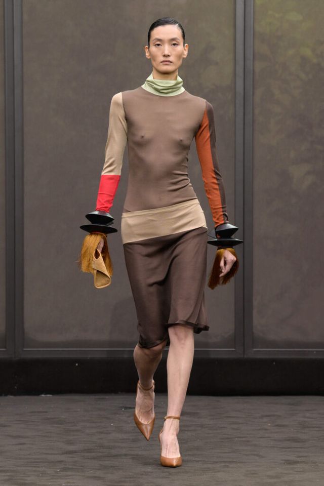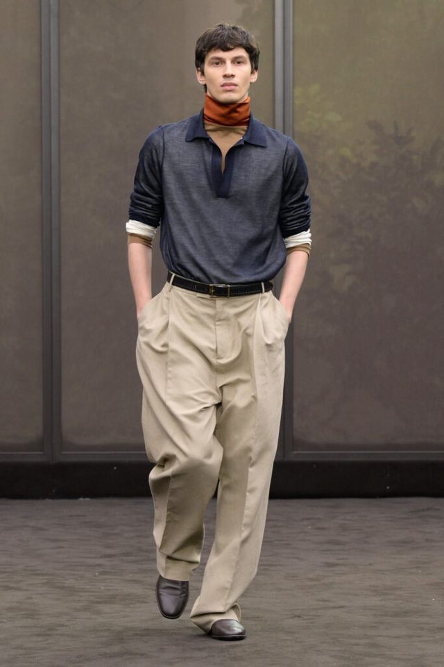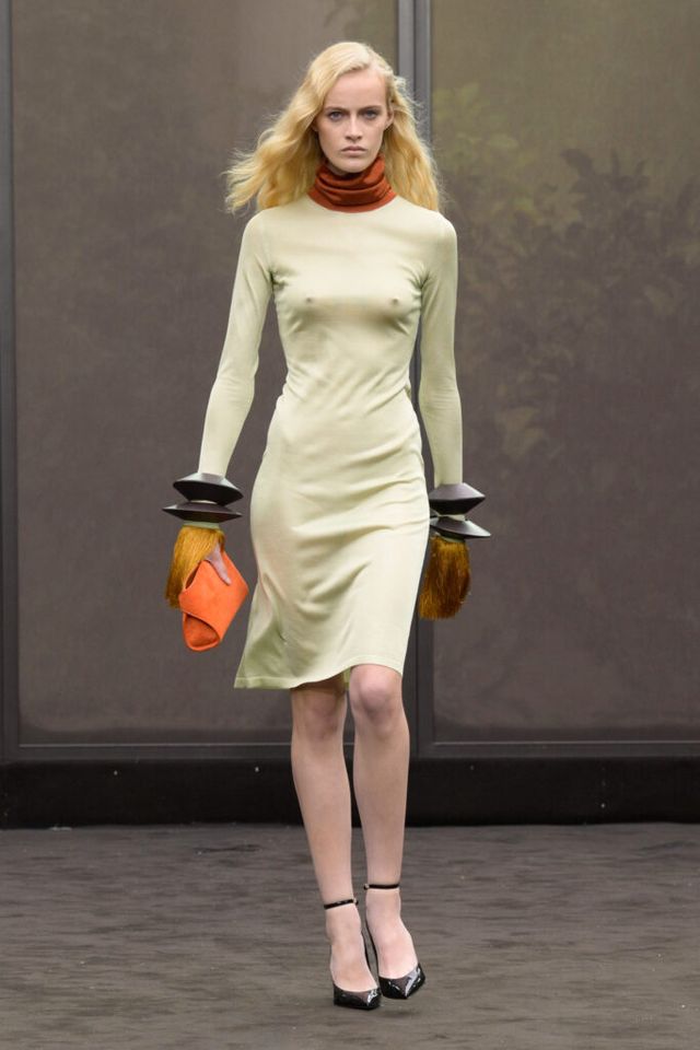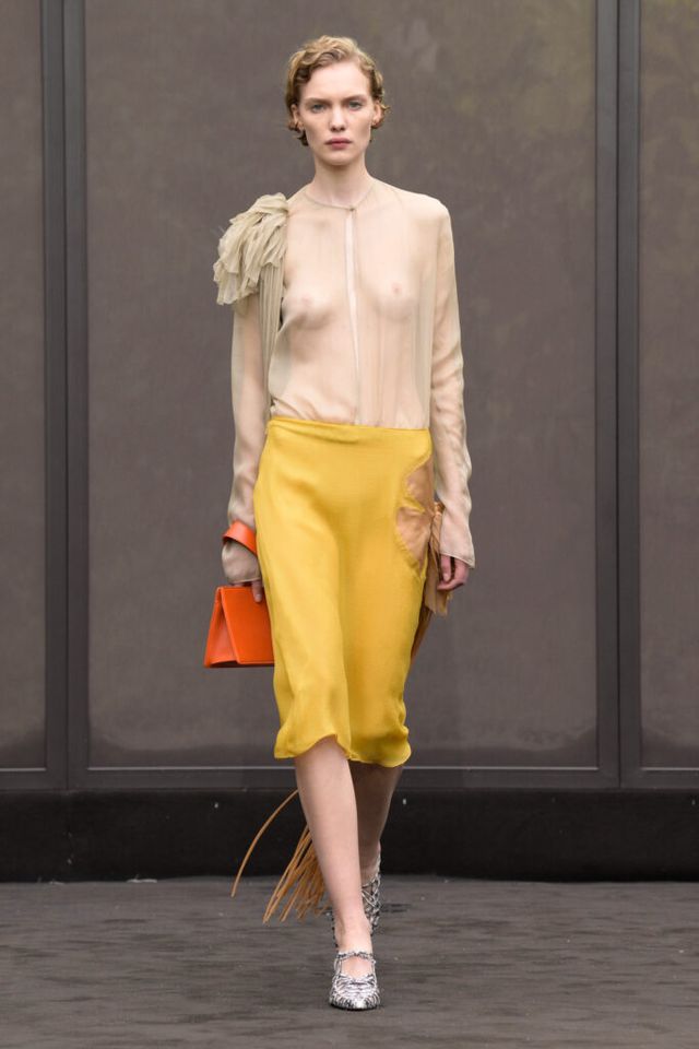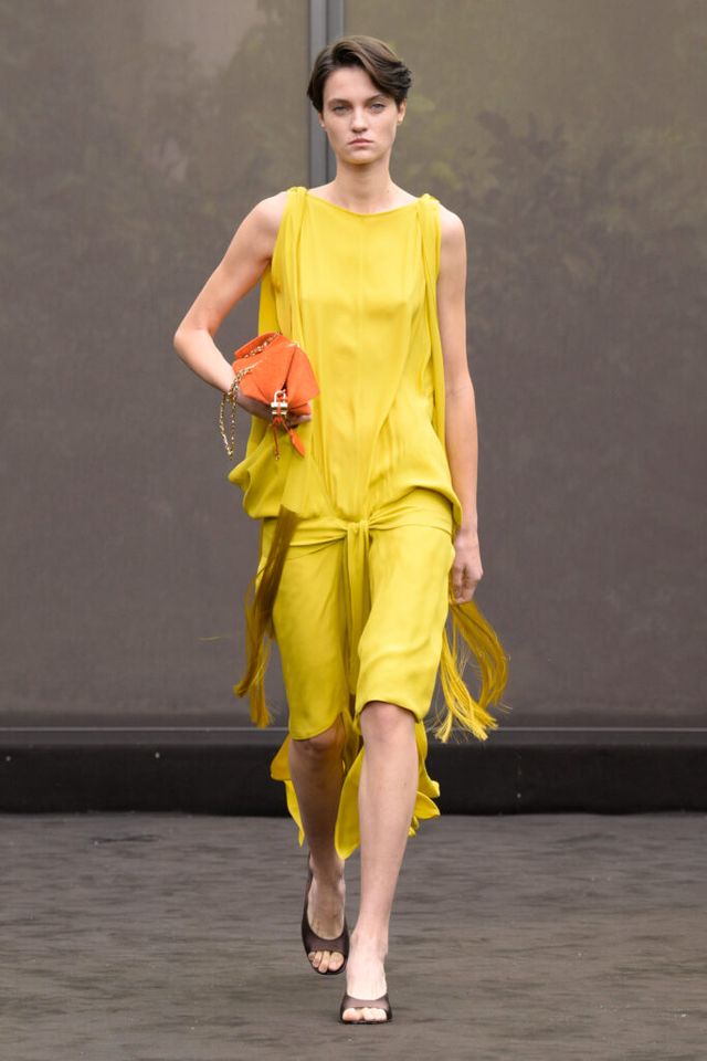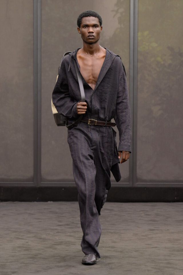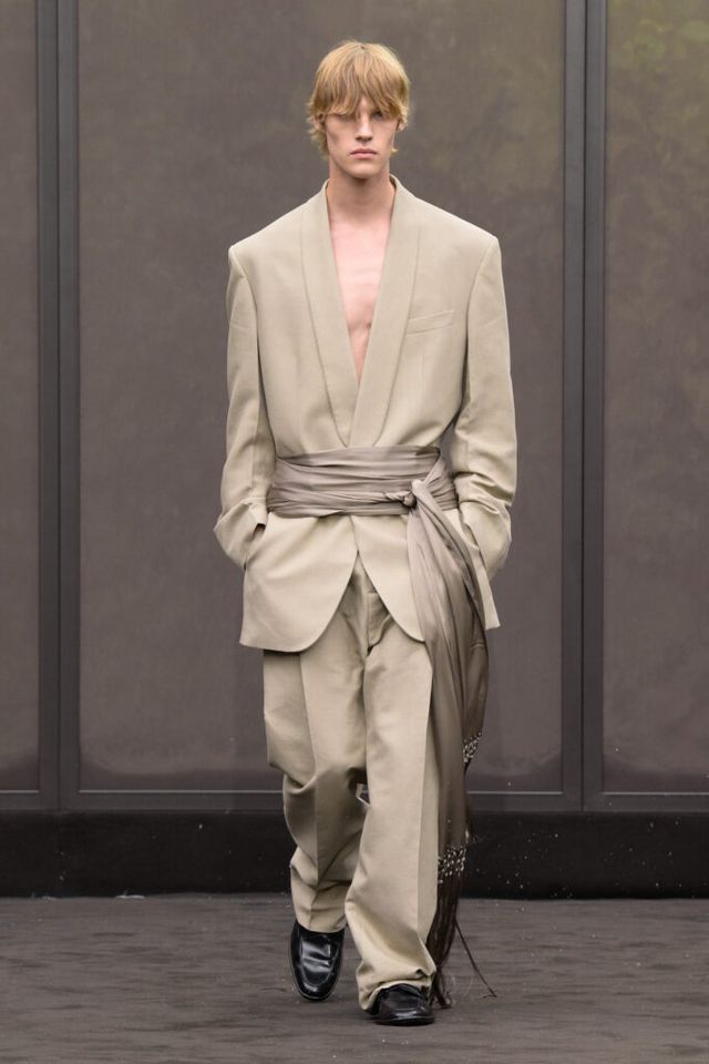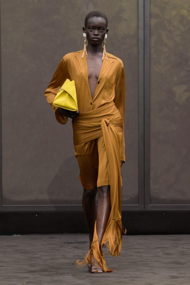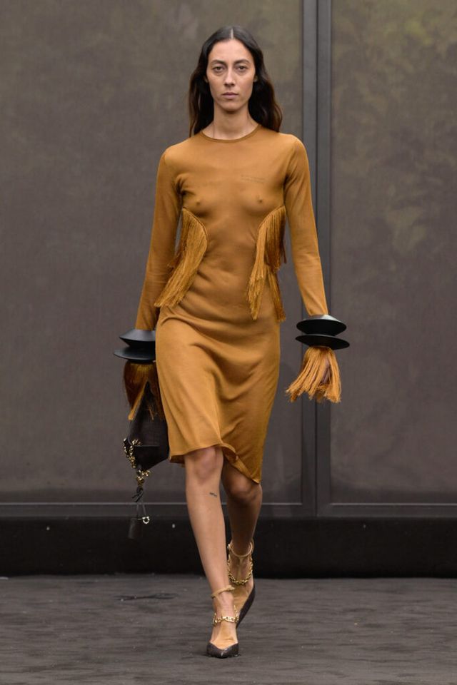 NOTE 1920년대의 ‘해방된 우아함’을 현대적 미학으로 승화한 맥시밀리언 데이비스. 이는 하우스의 아카이브 중 1920년대 무성영화의 스타 롤러 토드가 레오퍼드 룩을 입고 춤추는 장면에서 영감을 얻으며 시작됐다. 맥시밀리언은 유연한 실크에 애니멀 프린트를 넣거나 정제된 실루엣에 프린지나 장식을 더해 율동감을 주는 방식으로 재즈 시대의 낭만과 장식적 에너지, 성별의 경계를 유연하게 넘나드는 디테일을 가미했다. 과거의 향수를 넘어 새로운 시대를 향한 해방을 선언하는 출발점 같았던 쇼.