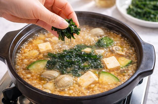또한 미역은 다른 재료와도 비교적 잘 어울리는 편이다. 두부나 버섯, 애호박, 조개 같은 재료와 함께 넣으면 식감과 맛의 조화가 자연스럽다. 특히 조개를 넣은 된장찌개라면 미역의 바다 향이 조개의 감칠맛과 어우러지면서 더욱 깊은 국물 맛을 만들어 낼 수 있다.