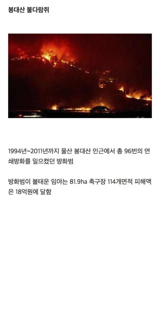 방화 90번 이상.. 저지르고 10년행으로 솜방망이 처벌을 받은 결과..