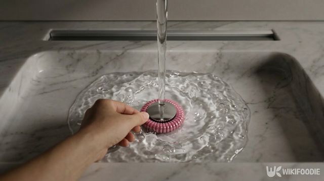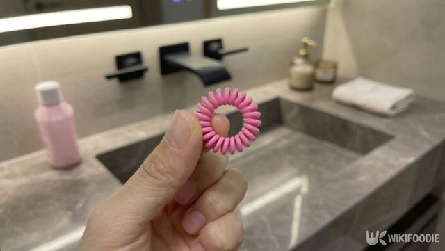 방법은 어렵지 않다. 세면대 중앙에 있는 팝업 배수구 부분에 스프링 머리끈을 끼워두기만 하면 된다. 따로 고정 장치를 사용할 필요도 없다. 머리끈을 배수구 위쪽에 살짝 걸치듯 끼워두면 준비는 끝이다.