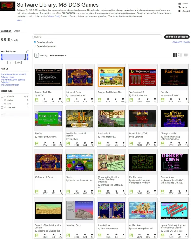 대략 4000개 이상 되는 도스게임 있음