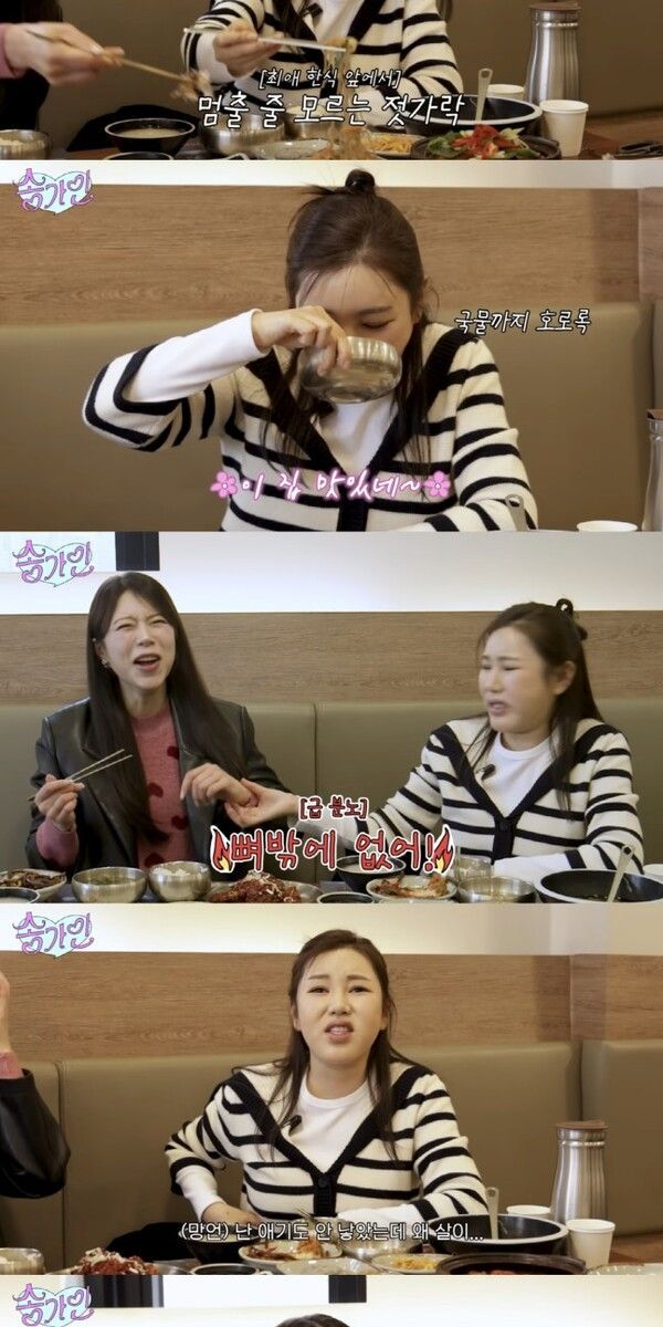 특히 송가인은 총각김치가 너무 맛있다며 따로 싸달라고 하고 싶을 정도라며 연신 감탄했다. 제작진 또한 평소와 달리 한식집에서 유독 잘 먹는 송가인의 모습에 놀라움을 감추지 못했다.
