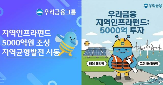 우리금융그룹이 재생에너지와 지역 인프라 투자를 본격화하기 위해 5000억 원 규모의 블라인드 펀드를 조성한다. 우리금융은 17일 '우리 지역발전 인프라펀드'를 결성한다고 밝혔다. 펀드 전체 자산의 70% 이상을 비수도권 인프라에 집중 투자하는 구조로, 정부의 5극 3특 지역균형성장 기조와 탄소중립 정책에 발맞춘 행보이다.