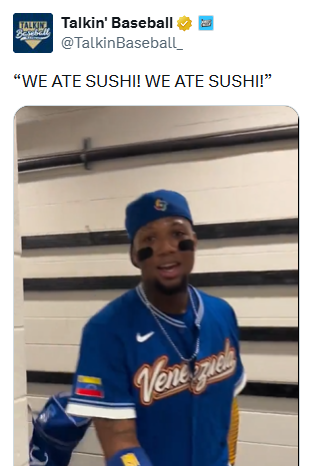 아쿠냐 주니어의 발언은 이미 이번 대회 가장 뜨거운 이슈 중 하나가 되고 있다. 지난 15일 8강에서 일본을 8-5로 꺾은 뒤 라커룸에서 아쿠냐 주니어가 "우리는 스시를 먹었다"를 외치며 기쁨을 표현했고, 이 장면은 곧바로 사회관계망서비스(SNS)를 통해 확산됐다.
