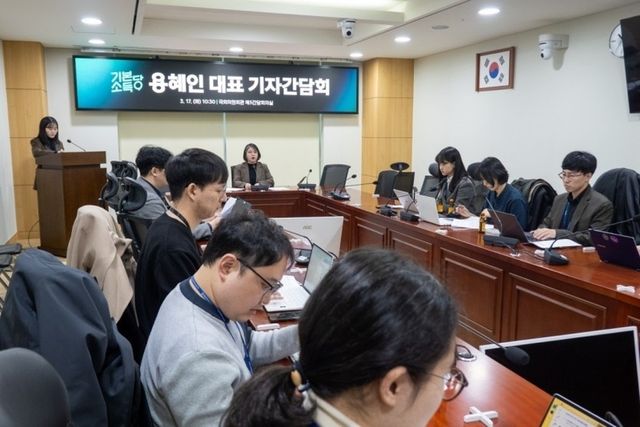 17일 서울 여의도 국회 의원회관에서 기자간담회를 연 용 대표는 “글로벌 패권 경쟁으로 인한 안보·민생·수출 문제를 비롯해 일자리가 사라지는 ‘뉴노멀 시대’가 무서운 속도로 다가오고 있다”며 “AI 대전환으로 부는 늘어나지만 민생의 절대적 기반인 소득 위협은 현실화가 되고 있다”고 말했다.