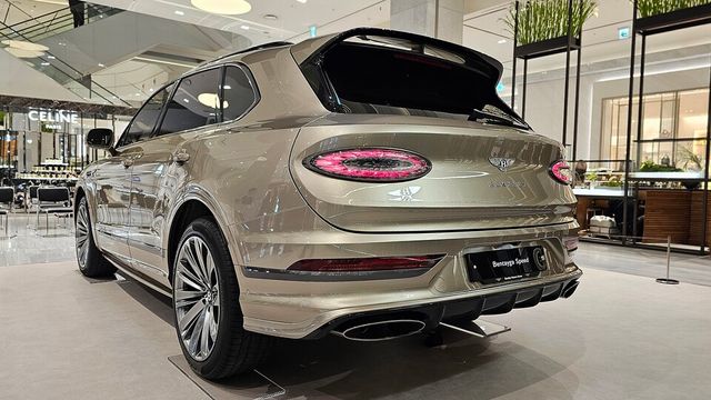 옆모습은 벤틀리 고유의 실루엣을 계승하되 군살 없이 매끈하다. 사진으로 보는 이미지보다 비교적 낮고 넓게 깔린 차체 덕에 안정감 넘치는 비율을 뽐낸다. 대형 스포츠유틸리티차(SUV) 고유의 웅장함에 스피드 전용 알로이 휠이 조화를 이루며 역동적인 이미지를 완성했다. 브랜드 최초로 제공되는 23인치 휠 옵션도 선택 가능하지만 기본 탑재되는 22인치 휠과 타이어만으로 강렬한 인상을 내뿜는다.