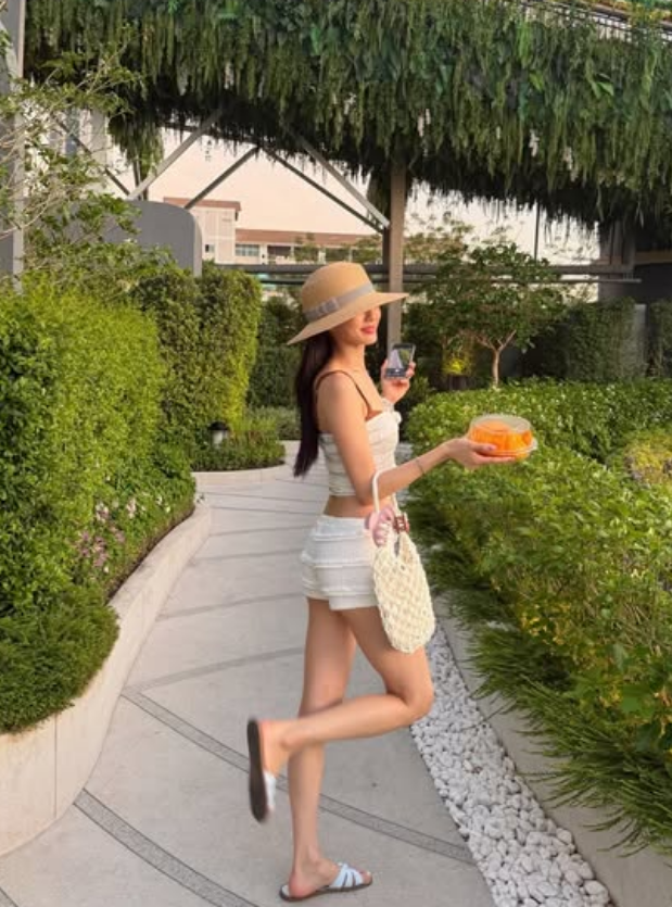 공개된 사진 속 경리는 수영복 위에 레이스 재질 톱과 반바지를 매치한 휴양지 룩으로 해변을 거닐거나 포즈를 취하고 있다. 가장 눈길을 끄는 것은 나인뮤지스 활동 시절부터 독보적이었던 그의 ‘마네킹 비율’이다.