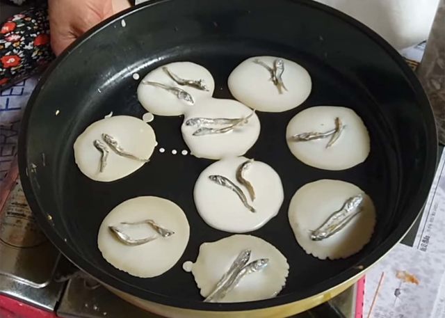 프라이팬 위에서 지글지글 익어가는 흰 반죽. 그 위에 올라앉은 마른 멸치 한 마리. 처음 보는 사람이라면 눈을 비비고 다시 볼 법하다. 멸치볶음도 아니고 해산물전도 아닌 낯선 음식은 명절이나 제삿날 충청도 집안의 부엌에서만 조용히 등장한다. 다른 지역에 사는 사람이 처음 마주치면 십중팔구 고개를 갸우뚱한다. "이런 음식이 실제로 있는 거였어?" 인터넷 커뮤니티에서 이 전의 사진이 퍼질 때마다 달리는 댓글의 첫 반응은 대개 이런 식의 놀라움이다.
