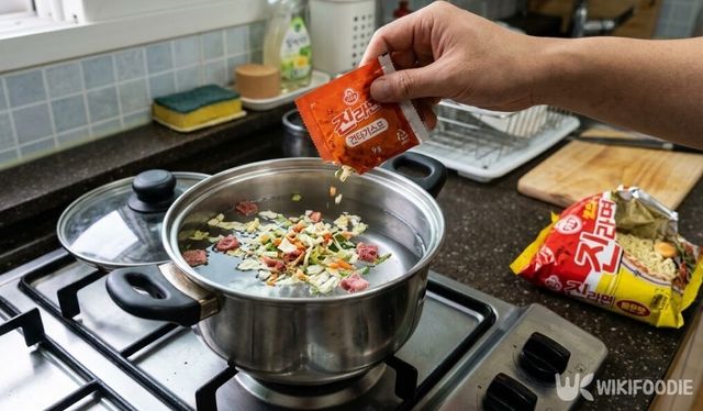 건더기 스프와 분말 스프는 넣는 시점이 다르다. 건더기 스프는 찬물 상태에서 먼저 넣는 것이 좋다. 건더기에 포함된 채소나 고기 성분이 물이 가열되는 동안 천천히 우러나오면서 국물에 깊이를 더해준다. 이 과정이 일종의 육수를 우리는 것과 같은 역할을 한다.