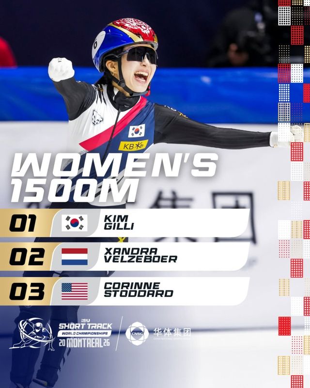 김길리는 지난 15일(한국시간) 캐나다 몬트리올의 모리스 리처드 아레나에서 열린 2026 국제빙상경기연맹(ISU) 쇼트트랙 세계선수권 여자부 1000m 결승에서 1분28초843을 기록해 우승했다. 2위 네덜란드의 잔드라 벨제부르(1분 28초 852)와는 단 0.009초 차였다.