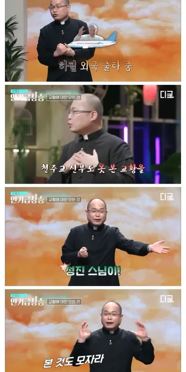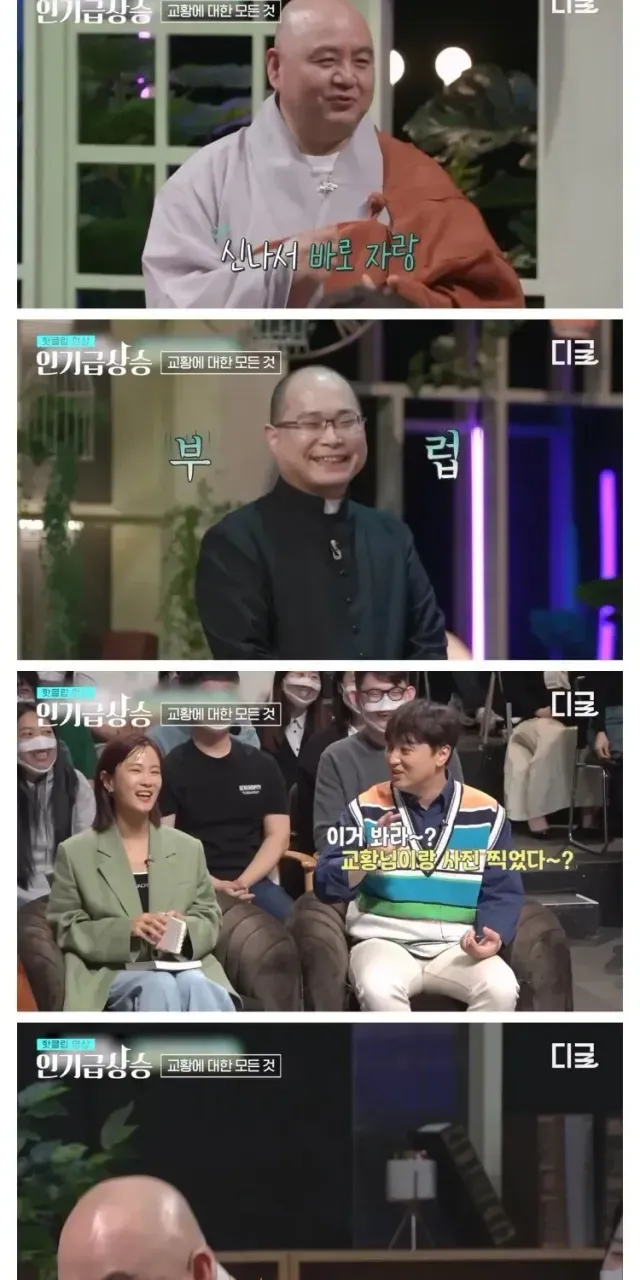 교황과 사진 찍었다고 신부님에게 자랑한 스님..jpg