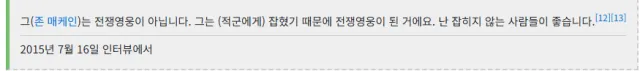 "나에게 특혜를 주지 마라" 고 석방 거부한 전쟁영웅 매케인