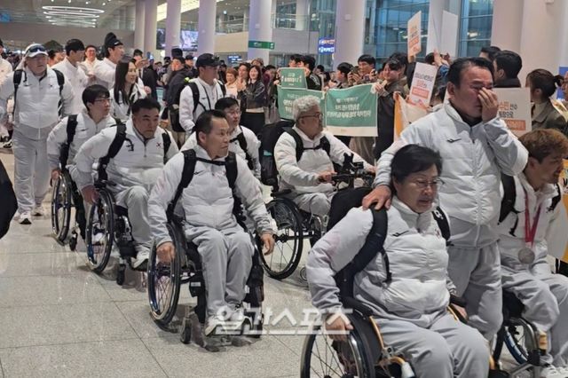 인천공항을 가득 메운 인파들의 환호와 박수 속에 입장하던 그 순간, 밝은 표정의 선수들 사이 펑펑 눈물을 쏟고 있던 사람이 있었다. 윤경선 대한장애인컬링협회장이다. 2026 밀라노·코르티나 동계패럴림픽 휠체어컬링 선수들의 휠체어를 끌며 해단식 행사장에 입장한 윤 회장은 행진 내내 뜨거운 눈물을 흘리며 얼굴을 붉혔다.