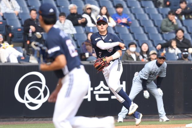 (엑스포츠뉴스 김근한 기자) 두산 베어스 박지훈이 시범경기 맹타와 함께 '멀티 포지션' 경쟁력을 앞세워 개막 엔트리 생존에 강한 의지를 드러냈다. 내야와 외야를 모두 소화하는 올라운더로 거듭나겠다는 각오다.