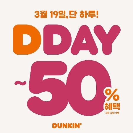 던킨은 오는 19일 하루 동안 전 품목을 대상으로 할인 혜택을 제공하는 'DDAY' 프로모션을 진행한다.