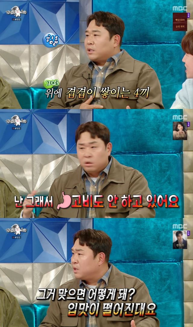 이날 방송에서 문세윤이 먹방 예능프로그램을 촬영하는 것이 점점 힘들다고 고백했다.