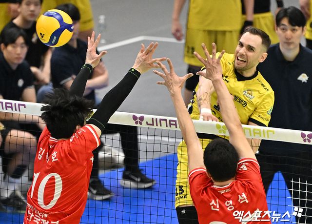 KB손해보험은 경기 초반부터 집중력을 발휘했다. 1세트 11-8에서 나경복의 퀵오픈과 임성진의 오픈으로 2점을 따냈고, 15-11에서 임성진의 오픈, 임성진의 서브득점으로 2점을 추가했다.