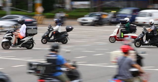 시내에 이륜차들이 지나가고 있다. 기사의 이해를 돕기 위한 사진 / 연합뉴스