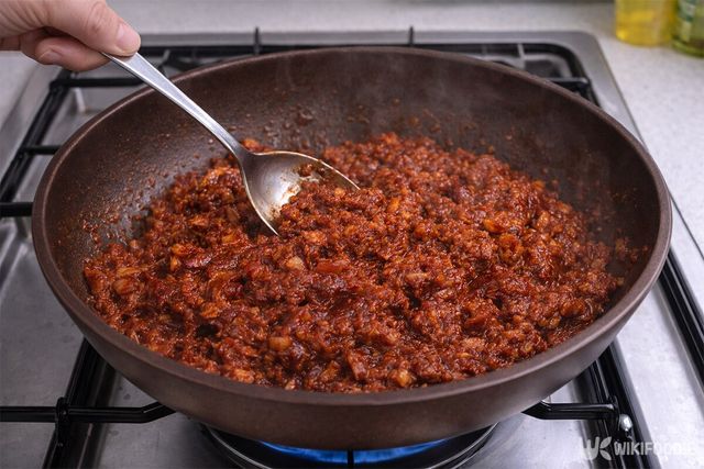 볶는 과정에서 보글보글 올라오는 기포가 사라질 때까지 충분히 저어준다. 주걱으로 들어 올렸을 때 걸쭉하게 떨어지는 상태가 되면 알맞게 볶아진 것이다.