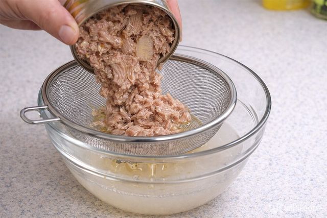 1. 참치는 체에 올려 10분간 자연스럽게 기름을 뺀다.