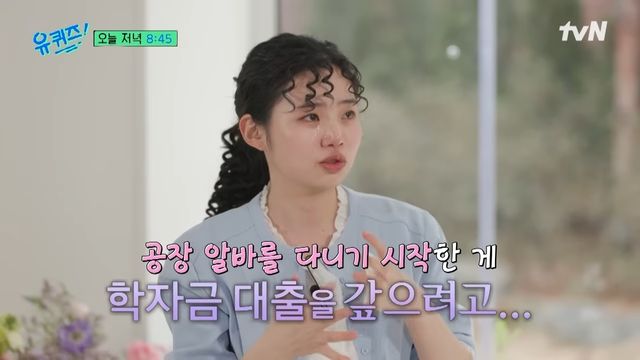 이어 "공장 아르바이트를 처음 나가는 날 새벽에 엄마가 제가 출근하는 모습을 보고 우시는 것 같았다"고 전하며 울먹였다. 학자금 대출을 갚기 위해 공장 일을 시작했다는 최지수는 "부모님 입장에서는 학자금 대출을 대신 못 내줬다는 것에 대해 엄청 힘들어하시더라"면서 "사실 저는 스스로 감당하는 게 당연하다고 생각했고, 부모님이 미안하다고 말씀하실 때가 힘들었다"고 속내를 밝혔다.