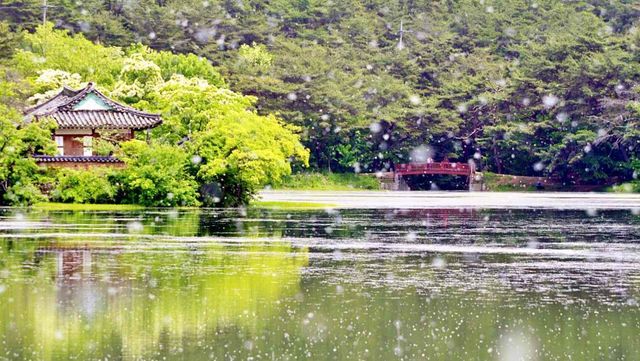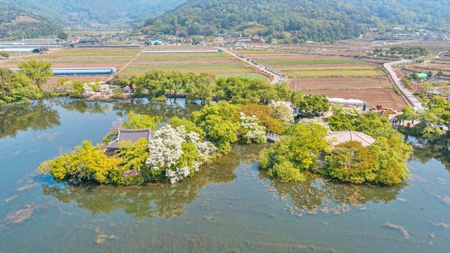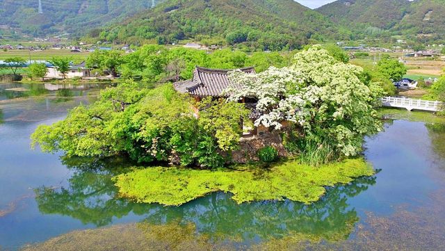 경남 밀양시의 '위양지'는 밀양 8경 중 하나로, 신라시대에 농업용수를 공급하기 위해 축조된 저수지다. 본래는 ‘양양지’라는 이름으로 불렸으나, 선량한 백성을 위한다는 뜻을 담아 위양지라는 이름을 얻었다. 세월이 흐르며 인근에 대규모 가산저수지가 들어서면서 본래의 수리 시설로서의 기능은 예전보다 줄었지만, 대신 빼어난 풍광을 품은 쉼의 공간으로 자리 잡았다. 못 가운데에는 다섯 개의 작은 섬이 떠 있고, 그중 하나에는 1900년에 세워진 안동 권씨 문중의 정자인 완재정이 자리해 고즈넉한 분위기를 더한다.