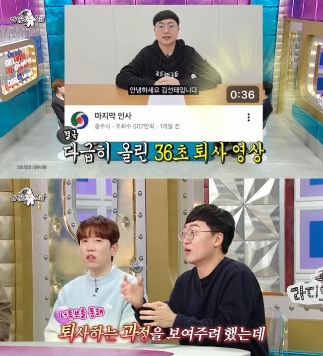 김선태는 갑작스럽게 알려진 사직 소식에 "원래라면 다다음주에 올라갔을 영상을 올리 수밖에 없는 상황이 됐다. 12시 반에 갑자기 영상을 만들어서 올렸다"며 36초 퇴사 인사 영상을 급히 찍게 됐다고 전했다.