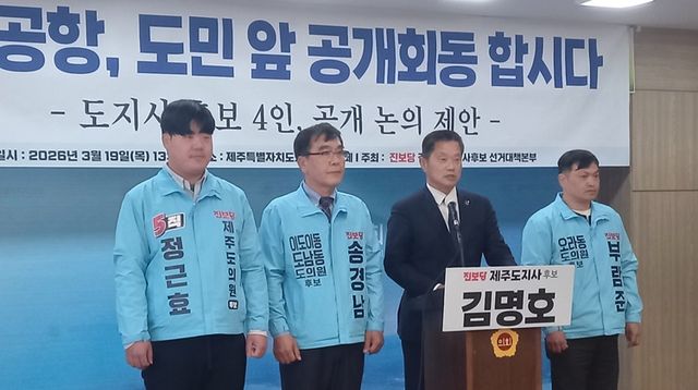[한라일보] 김명호 진보당 제주도지사 예비후보가 더불어민주당 경선 주자들에게 제2공항 해결 공개 회동 및 토론을 제안했다.