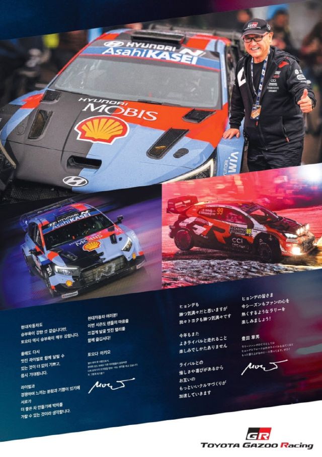 | 지난 2월 토요타가 현대자동차의 모터스포츠 선전을 기원하며 한국 일간지에 낸 광고(사진=토요타) |