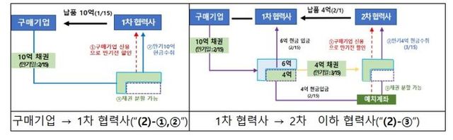 상생결제는 대기업 등 구매기업이 1차 협력사에 지급한 납품대금이 2차 이하 협력사로 안전하게 지급되도록 하는 결제방식으로, 협력사는 결제일에 현금지급을 보장받고, 구매기업의 높은 신용도를 활용해 낮은 금리로 조기 현금화가 가능한 장점도 있다.