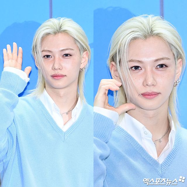 19일 오후 서울 성수동에서 스킨케어 클렌징 브랜드 글로벌 킥오프 이벤트가 열렸다. 이날 행사에 참석한 필릭스는 스카이 블루 컬러의 브이넥 니트에 깔끔한 화이트 셔츠를 레이어드해 댄디하면서도 세련된 남친룩의 정석을 선보였다. 특히 상의의 화사한 컬러감이 필릭스의 하얀 피부와 어우러져 시너지 효과를 냈다.