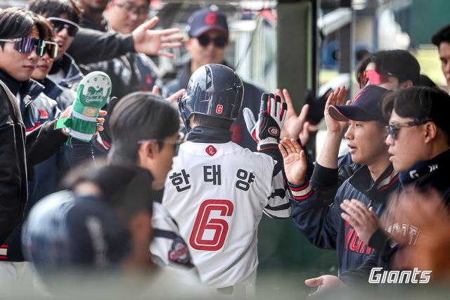 한태양은 개막전 선발 2루수로 유력하다. 원래 2루를 지켰던 고승민이 도박 논란으로 출장 정지 징계를 받은 상황도 영향을 미쳤지만, 그의 시범경기 타격감 자체가 워낙 좋다. 이날 멀티히트를 기록한 그는 7경기에서 타율 0.400(15타수 6안타)를 마크했다. 홈런 1개, 2루타 2개를 기록하며 빼어난 장타 생산 능력을 보여줬다.