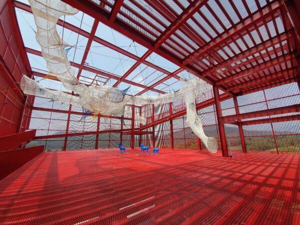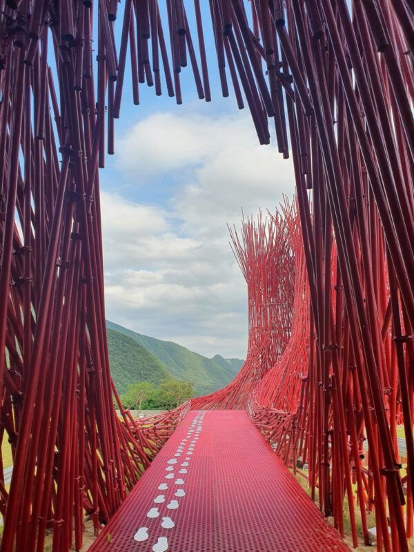 최근 SNS에서 가장 핫한 영월의 랜드마크를 꼽으라면 단연 젊은달 와이파크입니다. 주천면에 방치되어 있던 기존 술샘박물관을 감각적인 복합예술공간으로 완벽하게 재생시킨 곳이죠. 입구에 들어서는 순간 시선을 압도하는 거대한 붉은색 건축물 겸 대지미술은 최옥영 작가의 솜씨입니다. 강렬한 붉은 대나무 숲을 연상케 하는 이 구조물 사이를 걷다 보면 작가가 의도한 주제인 미지의 우주 속을 부유하는 듯한 초현실적인 감각을 느끼게 됩니다. 총 10개의 구역으로 나뉜 이 거대한 공간은 감각적인 현대미술 작품들은 물론 정교한 목공예와 금속공예 공방, 지역의 특색을 살린 술샘박물관까지 다채로운 볼거리로 꽉 채워져 있습니다. 붉은 구조물 사이로 스며드는 자연광과 그림자는 그 자체로 완벽한 조명이 되어주니, 일상에서 벗어나 예술적 영감으로 가득한 인생 샷을 남기기에 이보다 더 완벽한 무대는 없을 테죠.