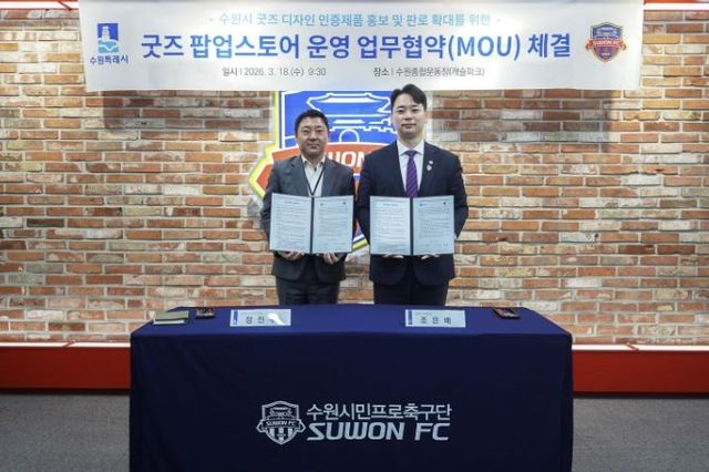 수원시 관계자는 “수원 지역 창작자와 기업이 만든 우수한 굿즈를 발굴하고, 경기장을 찾는 팬들에게 수원의 매력적인 굿즈를 선보이겠다”며 “이번 협약이 지역 굿즈 산업 활성화에도 큰 도움이 될 것”이라고 기대했다.