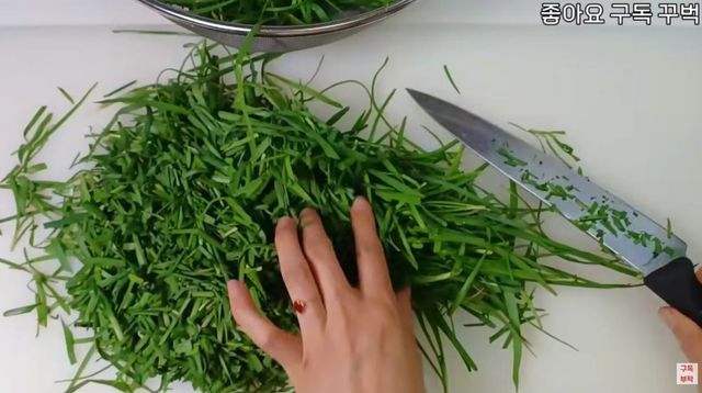 부추를 잘게 자르는 모습. / 유튜브 '주부나라'
