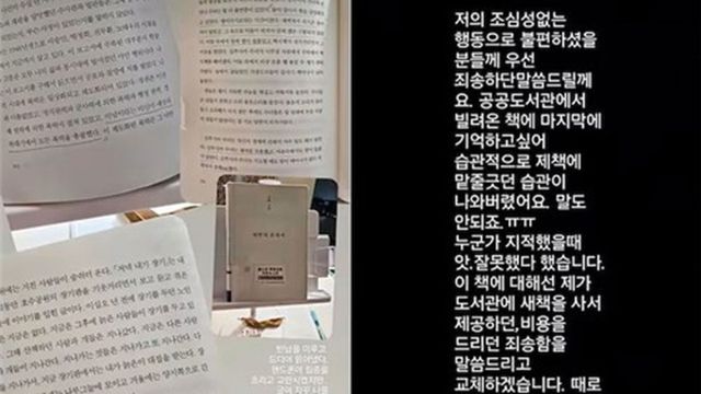 김지호의 공공 도서관 책 낙서가 이번이 처음이 아닌 정황이 포착되면서 논란을 더했다. 과거 그가 올린 독서 인증샷에도 도서관 바코드가 붙은 책에 볼펜으로 줄을 그어둔 모습이 그대로 남아 있었다.