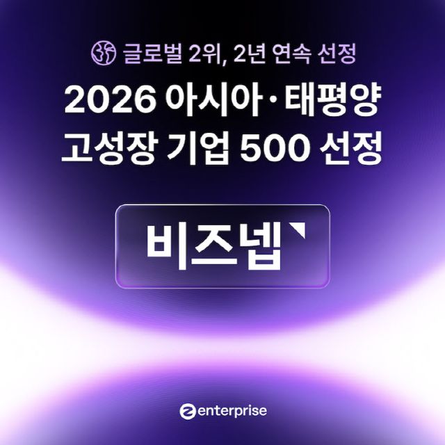 비즈넵 운영사 지엔터프라이즈는 자사 서비스 비즈넵이 영국 경제지 파이낸셜타임스(FT)가 발표한 ‘2026 아시아·태평양 고성장 기업 500’에서 글로벌 2위를 기록했다고 20일 밝혔다.