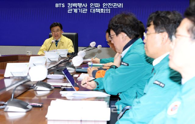 윤호중 장관은 이날 광화문역 내 현장 회의실에서 서울시·경찰·소방 및 주최측 관계자로부터 기관별 최종 준비 상황을 보고받았다. 이후 인파·위생과 보안 및 치안, 사각지대 관리, 시설물 안전 등 4개 분야를 중심으로 공연 현장을 점검했다.