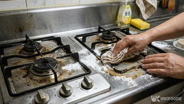 밀가루 청소법은 싱크대에만 사용되는 것은 아니다. 가스레인지 주변이나 조리대 타일 이음새처럼 기름 찌꺼기가 자주 끼는 부위에도 같은 방식으로 사용할 수 있다.