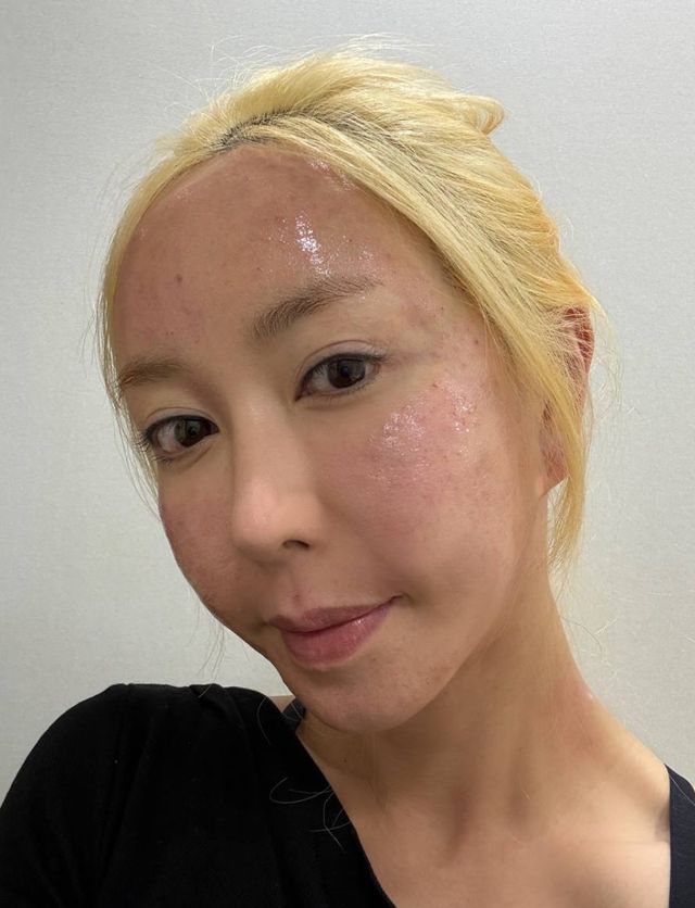 특히 첫 번째 사진에서는 얼굴 곳곳에 딱지가 생긴 상태가 그대로 드러나 팬들에게 적지 않은 놀라움을 안겼다. 슈는 “처음에는 열감이 있고 따갑고 빨개졌다”며 시술 직후 피부 상태를 솔직하게 전했다.
