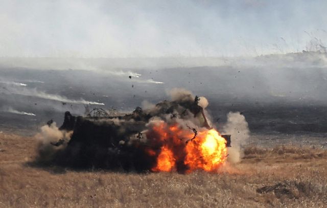 이번 훈련에서는 드론과 전차를 결합한 현대전 양상도 부각됐다. 북한은 무인공격기를 활용해 적 지휘거점과 대전차 화력진지를 선제 타격하고, 이후 전차와 보병이 돌격하는 방식의 작전을 시연했다.