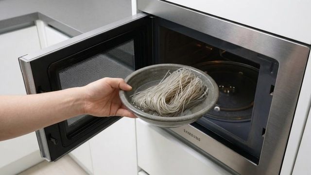 당면을 전자레인지에 넣는 모습의 자료사진. AI가 생성한 자료사진. (실제 조리법 모습과 차이가 있을 수 있음을 밝힙니다.)